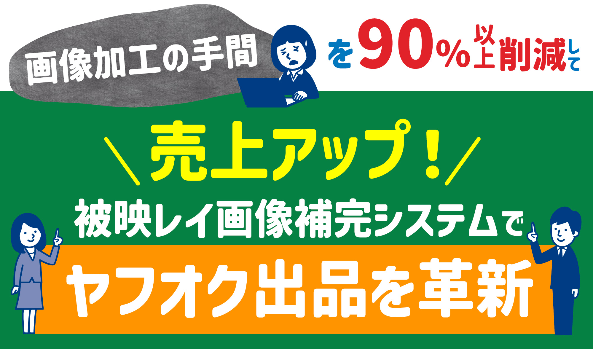 魅力的な画像を整備することで閲覧数・入札数の増加が期待できます。実際、画像加工を怠ったことで売上が数十%も落ち込んだ例があるほど、画像クオリティは売上に大きく影響します。被映レイ画像補完システムで常にベストな画像を提供すれば、アクセス数アップ→落札率アップの好循環が生まれます。