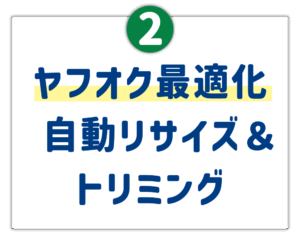 アップロード先であるヤフオクの仕様に自動対応します。例えば画像サイズは自動的に長辺1200ピクセルにリサイズされるため、高画質を保ちつつ容量オーバーの心配もありません。また推奨比率である縦横比4:3に自動トリミング可能。余白が多すぎて画像が小さく表示される事態を防ぎ、どの写真も画面いっぱいに魅せることができます。